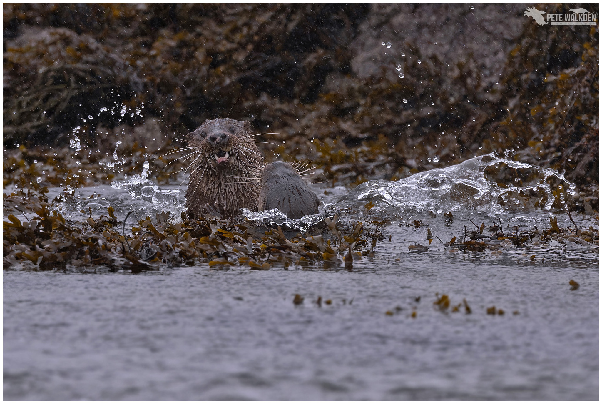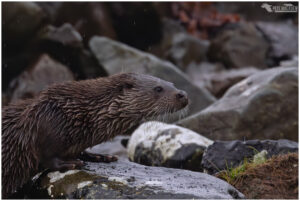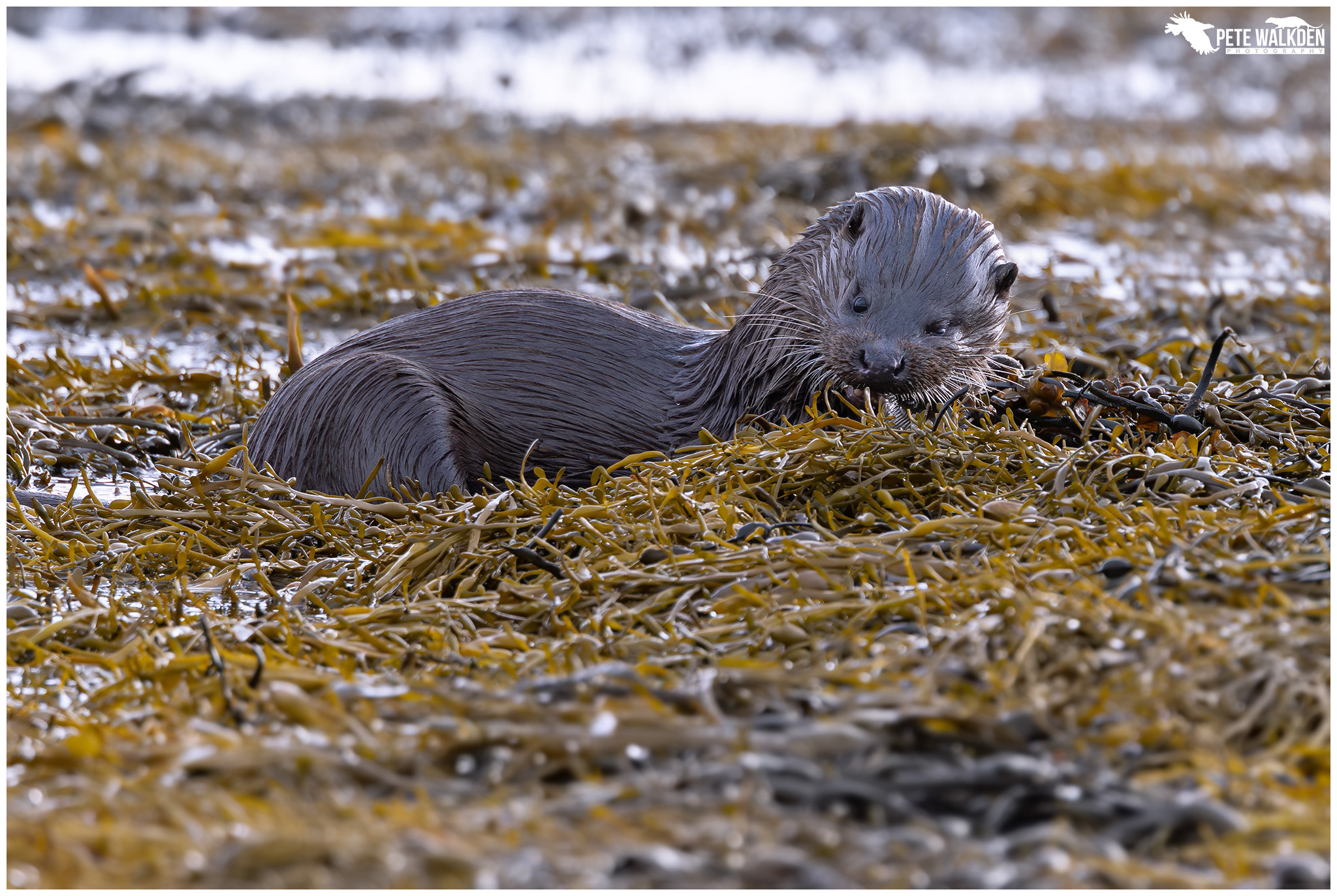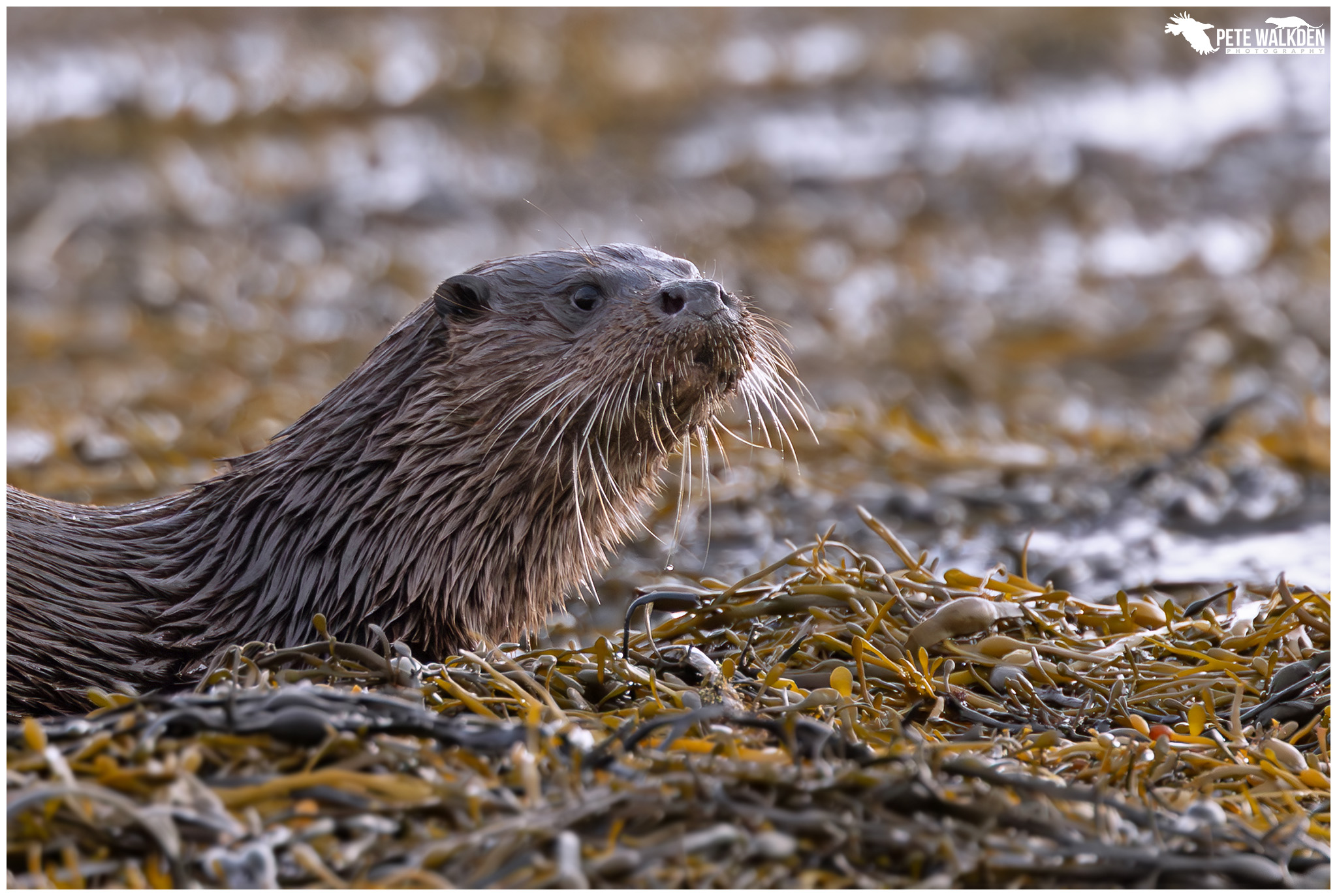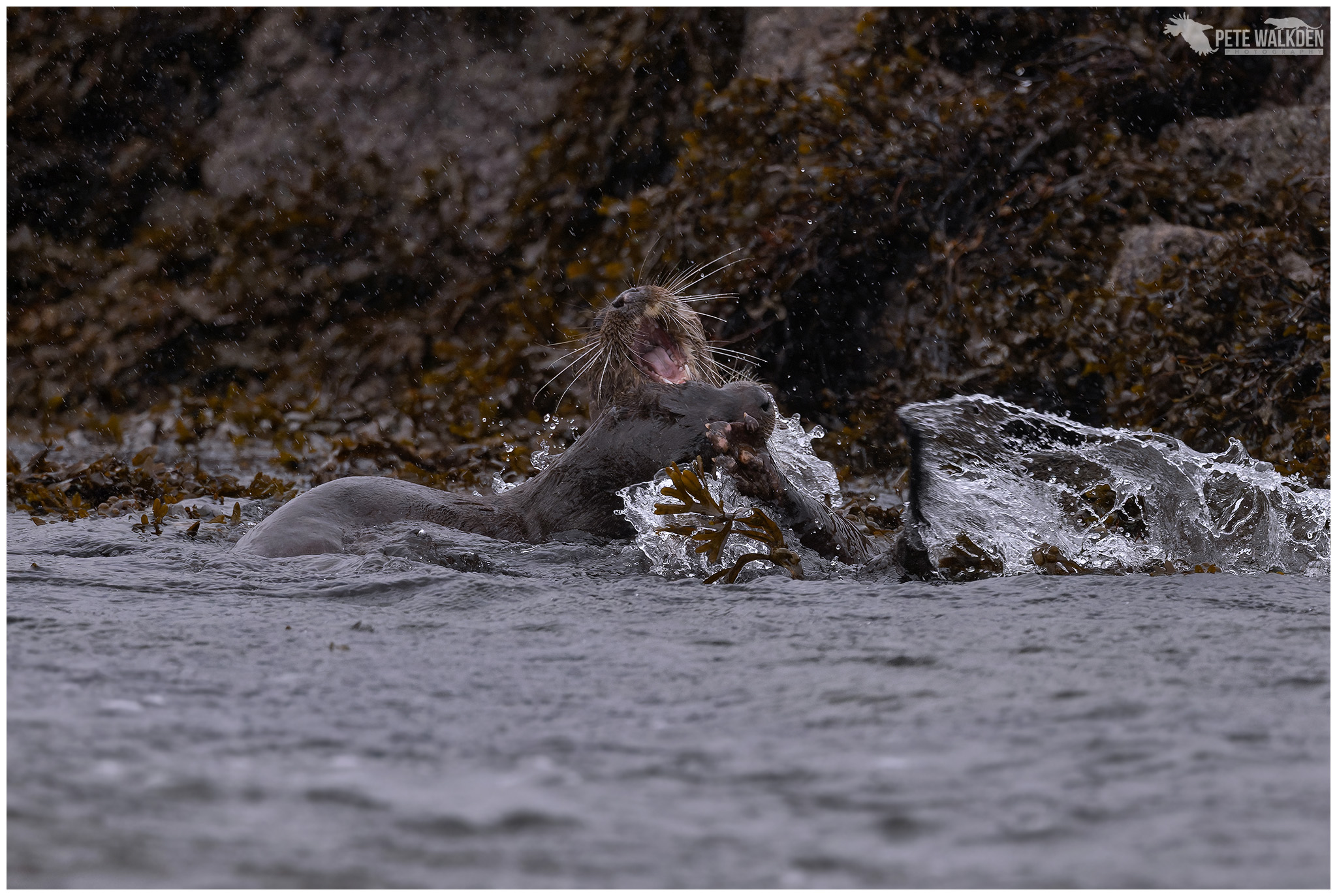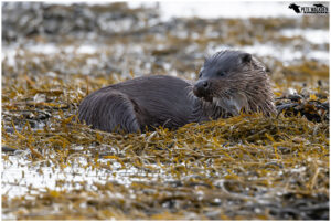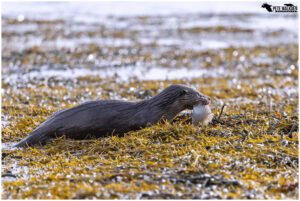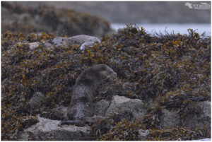 The first day we were treated to some bright weather, and spotted a lone otter bringing ashore a flat fish. We got into a gap in the rocks, and waited. The light was harsh at times, so I tried to take images when the sun was behind a cloud, or the otter had dried off a little. Wet otters and sunshine do not mix!