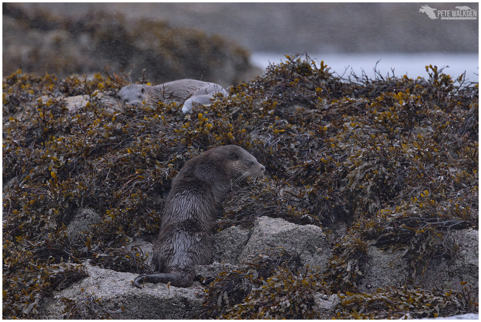 Risking slipping over, we climbed into a spot well hidden from the otters, and also the road, and waited. A family of three, mum and her two cubs were out in the loch hunting, nearby.
