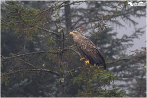 With the wet conditions, golden eagles were hard to come by, but we saw them when the rain stopped. The white-tailed eagles seem less bothered by it, and we had some great sightings of those, with a particular favourite in the glens, where an adult flew over the road in front of us, and then perched in a tree nearby.